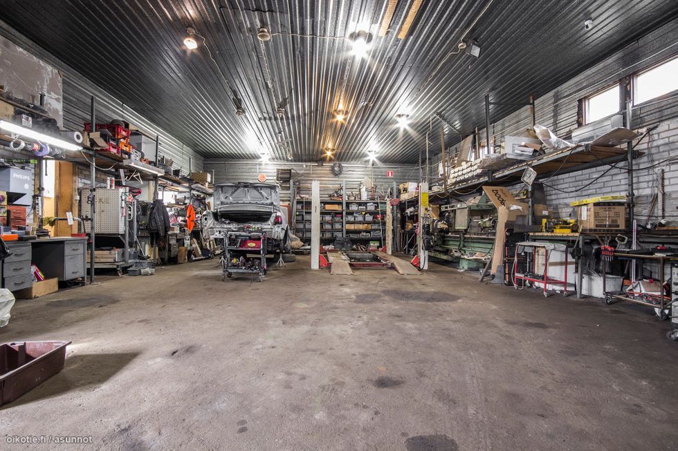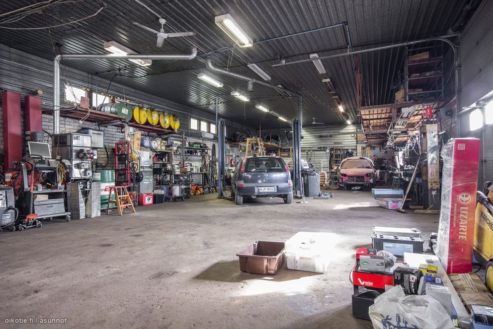 Autokorjaamona toimiva 295 m2 halli + 125 m2 omakotitalo samalla kaupungin vuokratontilla.