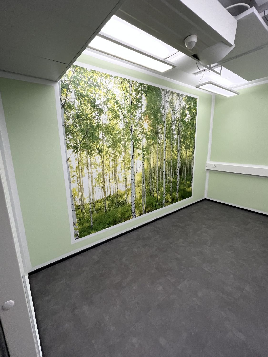 4-5 erillisestä työ-/hoitohuoneesta (omilla vesipisteillä)