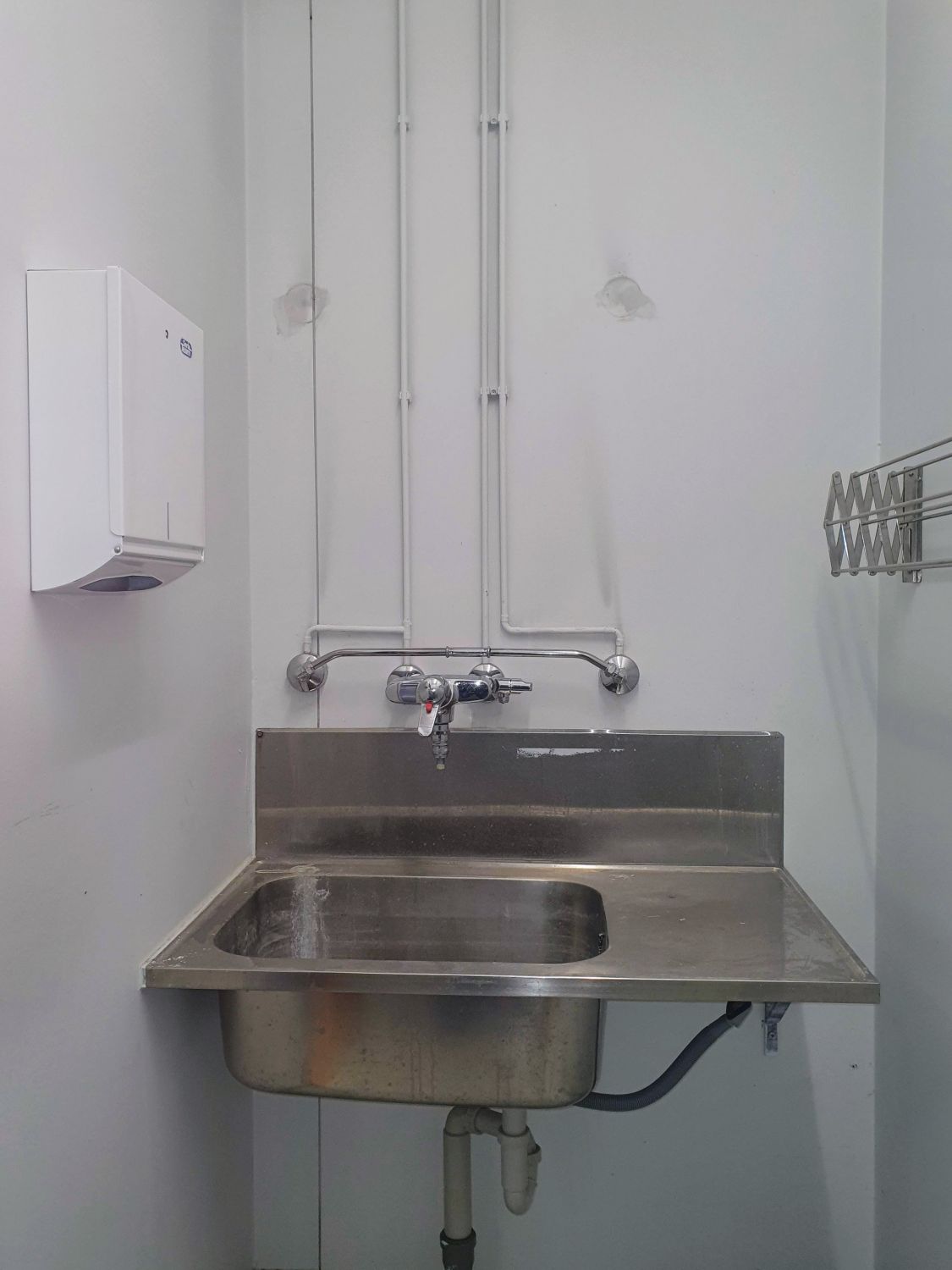 Tavarahuolto hoituu katetun lastauslaiturin (jossa nostin)/tavarahissin kautta.