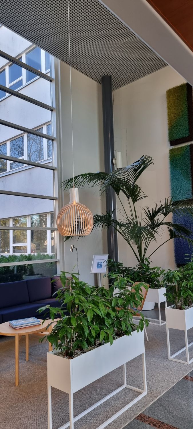 Aulapalvelu, lounasravintola, hieroja, kampaamo/parturi, kuntosali, pyörävarasto, pukeutumis- ja pesutilat.