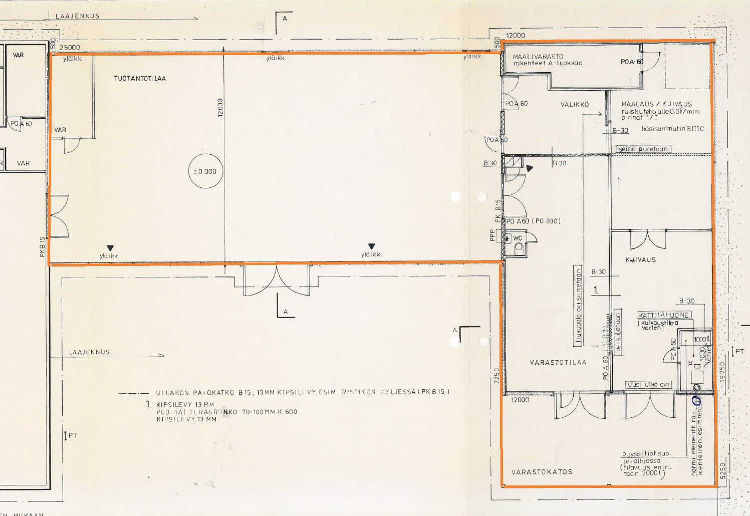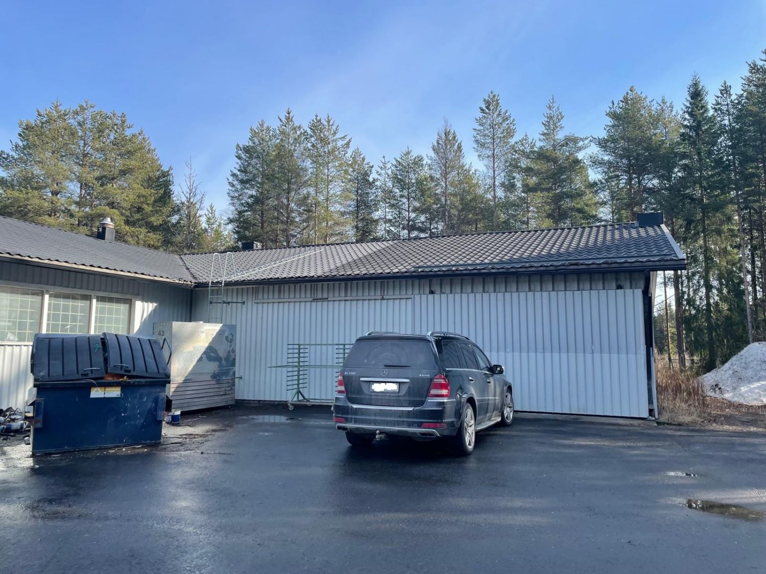 Edessä on myös peltiseinäinen kylmä varastotila, jossa on asfalttilattia.