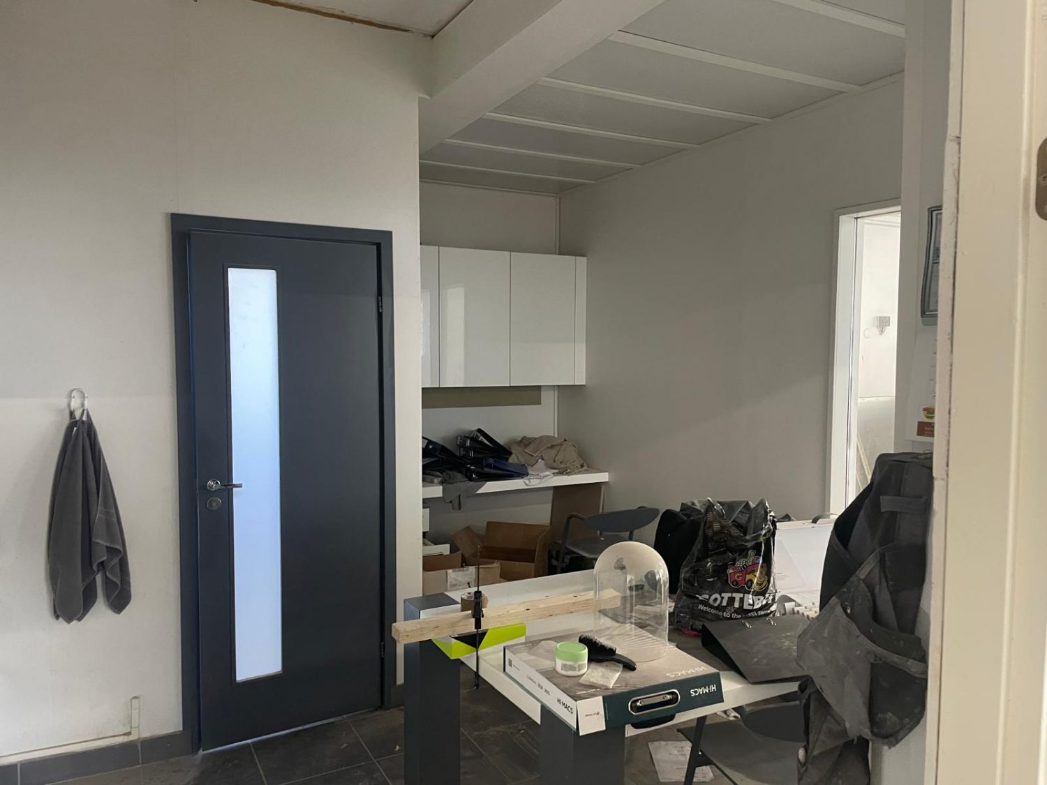 Hallissa on toimistohuone, missä on wc. Halliin on nosto-ovi.