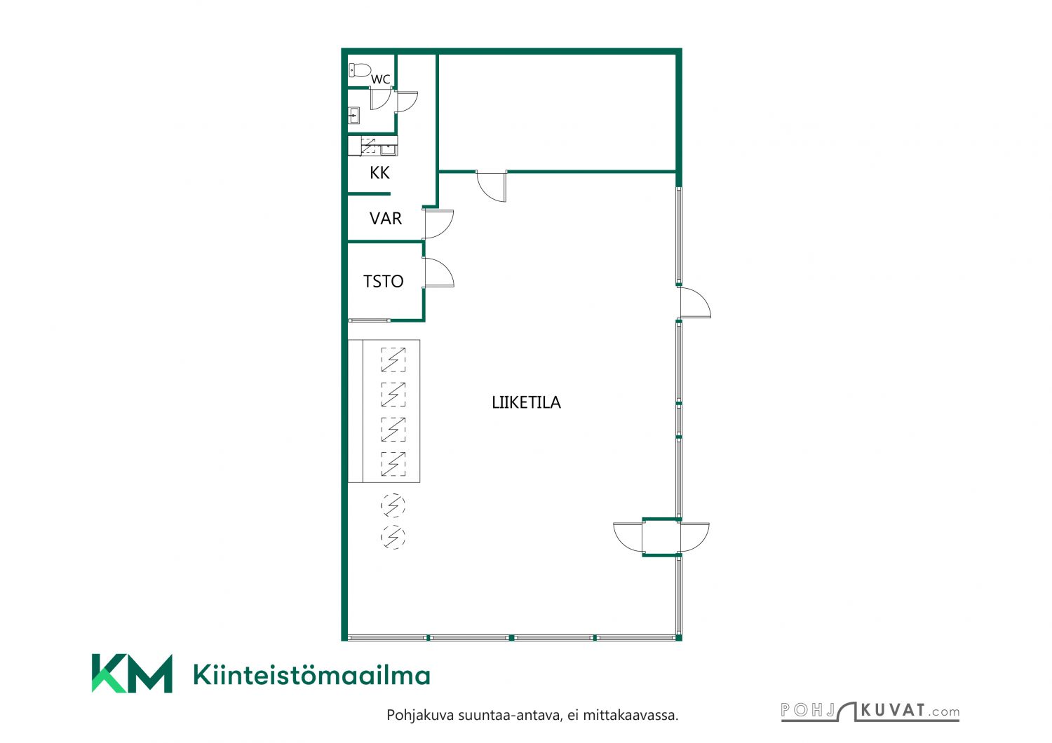 Liiketilan vuokra 1500 €/kk. Toistaiseksi voimassa oleva tai määräaikainen vuokrasopimus, sopimuksen mukaan.