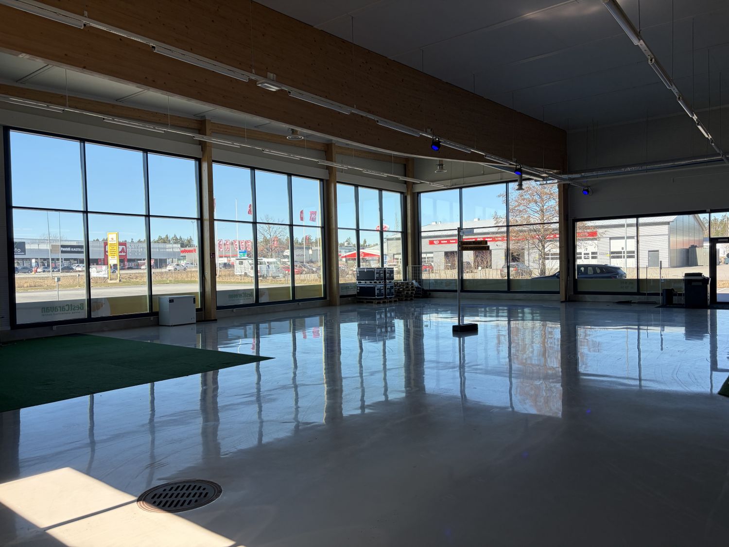 Kiinteistössä on yli 1000 m² avaraa myymälätilaa sekä yhteensä noin 2200 m² kokonaisuus. Lisäksi kohteessa on noin 600 m² huoltohalli, joka soveltuu esimerkiksi ajoneuvojen huoltoon, pesuun tai muuhun varastointi- ja työskentelykäyttöön.