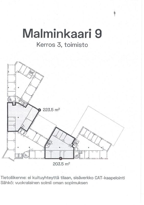 Vuokrataan kiinteistön 3. kerroksen hyväkuntoinen toimistotila 203,5 m².