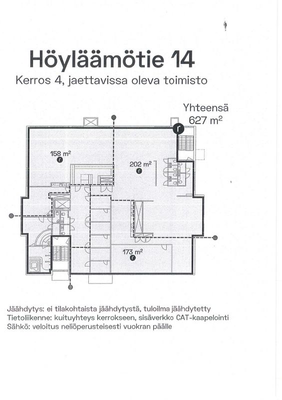 IT-kaapelointi cat 6, kerrosnousut kuidulla. Tiloissa koneellinen ilmanvaihto ja tuloilman jäähdytys. Hyvät julkiset kulkuyhteydet, useita lounaspaikkoja läheisyydessä.