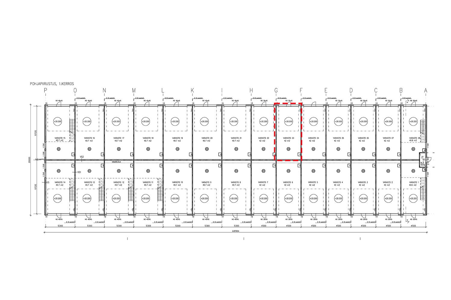 Helsingin Kivikossa on myytävänä ja vuokrattavana hyvä, uudehko hallitila (pohjakuvassa tila 23). Tila sopii monenlaiseen käyttöön: varasto-, työ- tai harrastetilaksi, mutta ei autokorjaamoksi tai -pesulaksi.