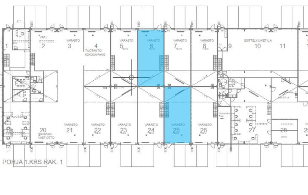 Vuokrattavana on kaksi erillistä, noin 98 m²:n kokoista varasto‑ ja tuotantotilaa (A8 ja A25), jotka tarjoavat toimivat ja monipuoliset puitteet niin varastointiin kuin tuotantokäyttöön.