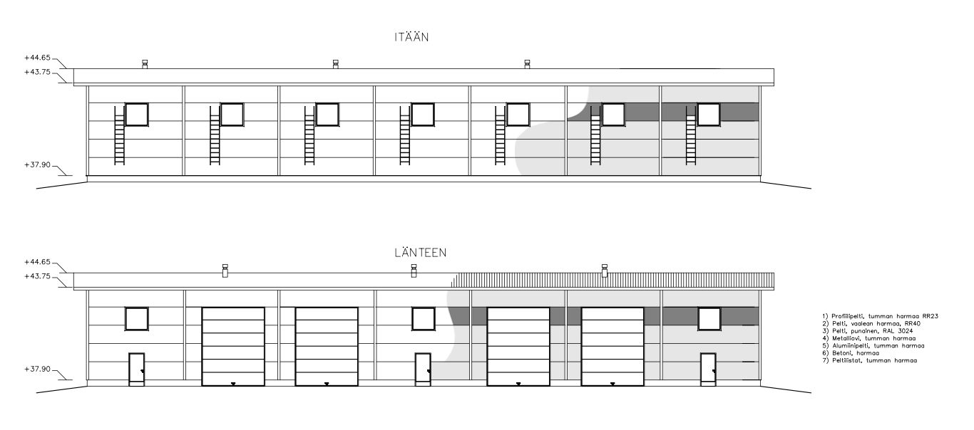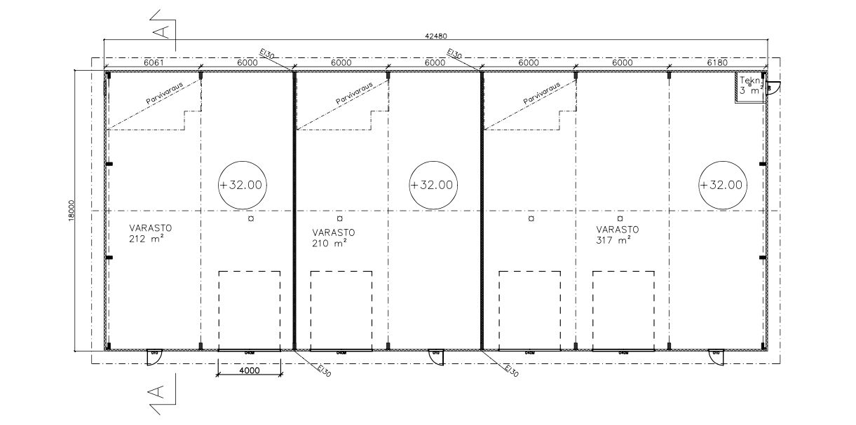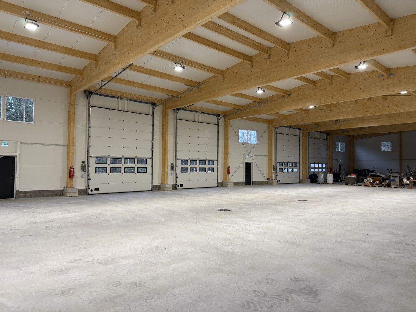 Hallin sisäkorkeus on 6 metriä. Hallissa on 4 metriä leveät 5 metriä korkeat sähkökäyttöiset nosto-ovet. Lämmitysmuotona on maalämpö lattialämmityksellä, ja lattiakaivot on varustettu öljynerotuksella. Tiloissa on varaus parvirakentamiselle.