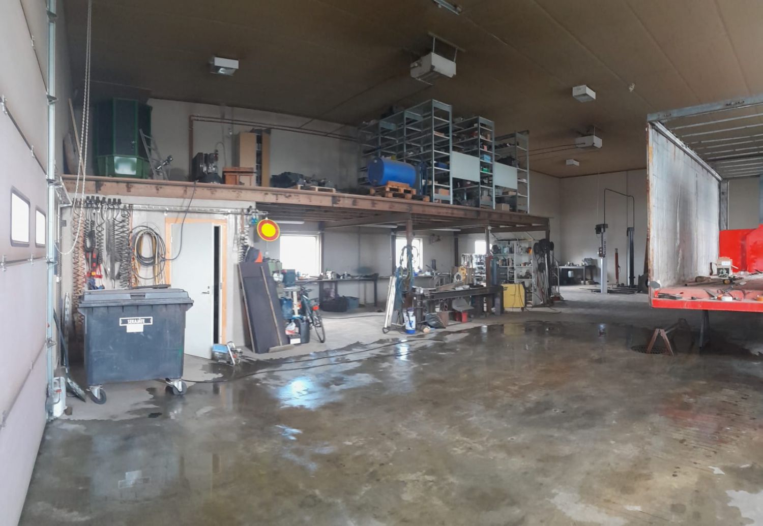 Kohteessa 5x5m nosto-ovi josta mahtuu sisälle vaikka mitä. Pelletti lämmitys.