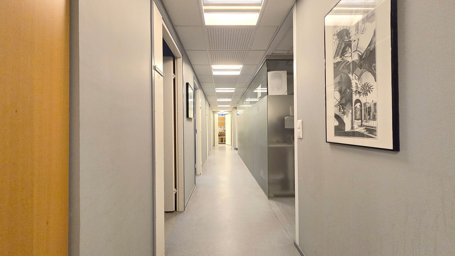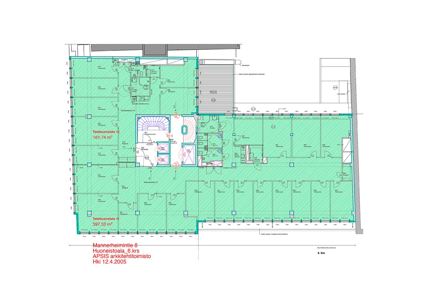 kerros toimistotilaa 197 m² ja 413 m² = 652 m²