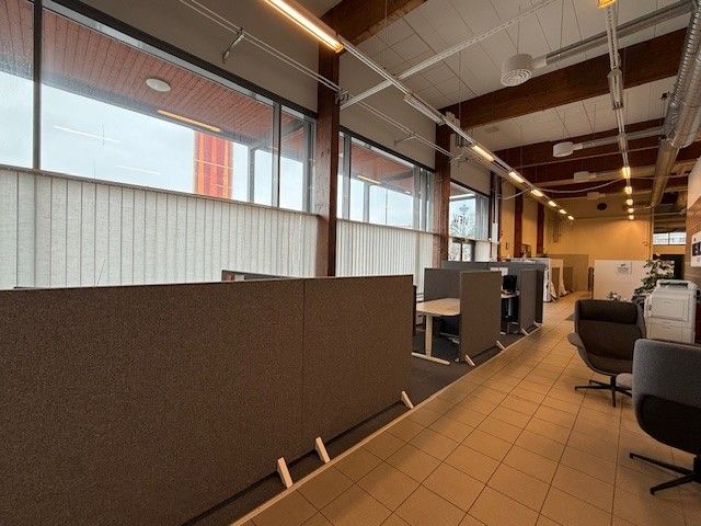 Korkeaa, ilmastoitua tilaa. Tilaan on rakennettu kevyin väliseinin neuvottelu- ja työtiloja. Hyvät sosiaalitilat.