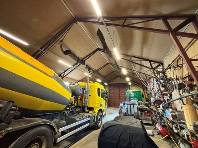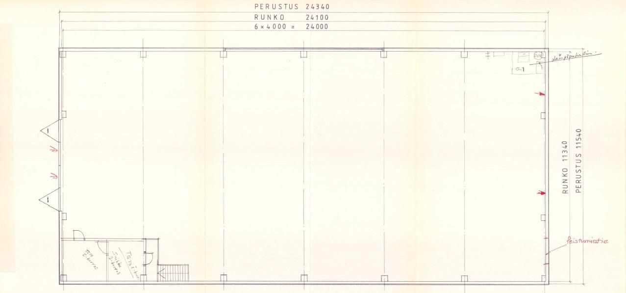 Teollisuuskadulla omalla 2176 m2 tontilla v. 1988 rakennettu (1991 lopputarkastettu) korkea hallitila, jonne mahtuu suuremmallakin kalustolla. Yhtenäinen tila, lisäksi wc, tsto/varastotila). Taitto-oven koko K 5,5m/L5m. Hallin sisämitat n.24,2 x 11,5 m. Öljypuhallin lämmitys, rasvamonttu, lattiakaivo öljyn erotuksella. Tästä moneen taipuva teollisuushalli. Rakennusoikeuttakin on runsaasti jäljellä. Mennäänkö katsomaan?