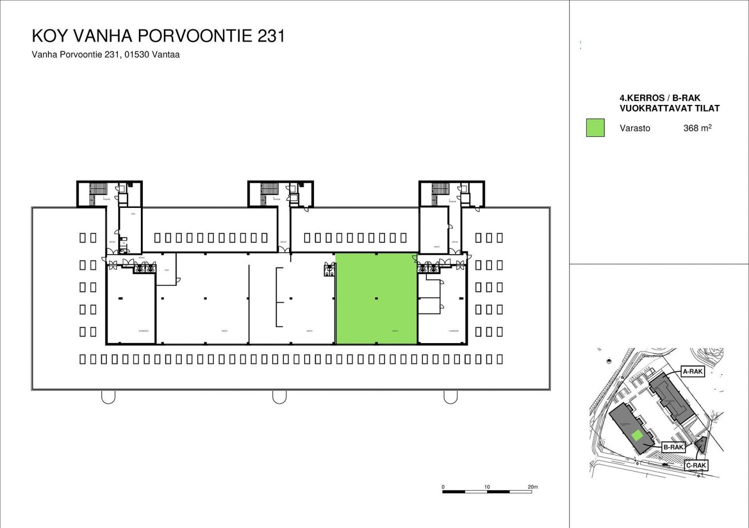 Vanha Porvoontie 231 on monipuolinen kolmesta erillisestä toimisto-, tuotanto- ja varastokiinteistöstä koostuva kokonaisuus. Kiinteistössä on erilaisia tiloja useissa kerroksissa: mm. arkistointiin ja pitkäaikaiseen varastointiin soveltuvia varastotiloja löytyy maantasosta neljänteen kerrokseen. Kiinteistöllä on laaja, aidattu rekkapiha ja useita lastauslaitureita, joilta kulku kerroksiin tapahtuu tilavilla tavarahisseillä, joiden kantavuus on 5000 kg/ m².