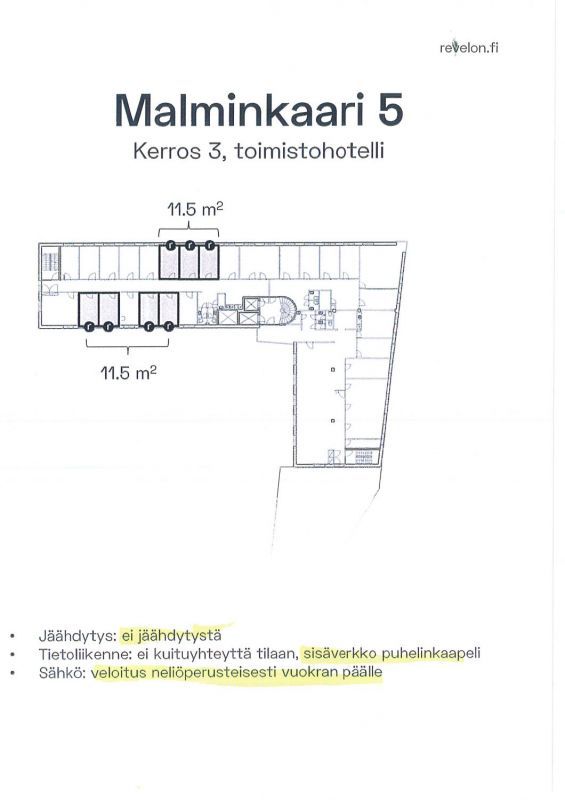 Vuokrataan Malminkaari 5:stä toimistotilaa 34,5 m², koostuu kolmesta vierekkäisetä huoneesta. Vuokralaisten yhteiskäytössä wc- ja keittiötilat sekä neuvotteluhuone. Tila sijaitsee kiinteistön 3. kerroksessa.