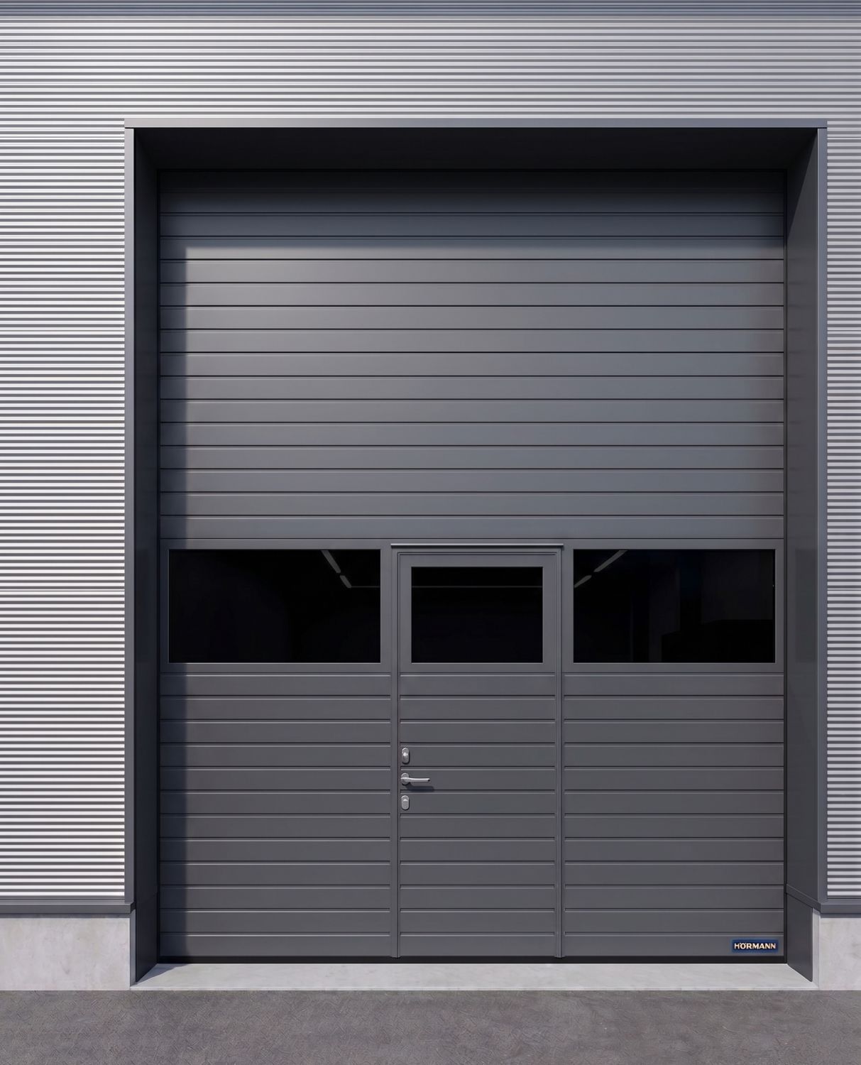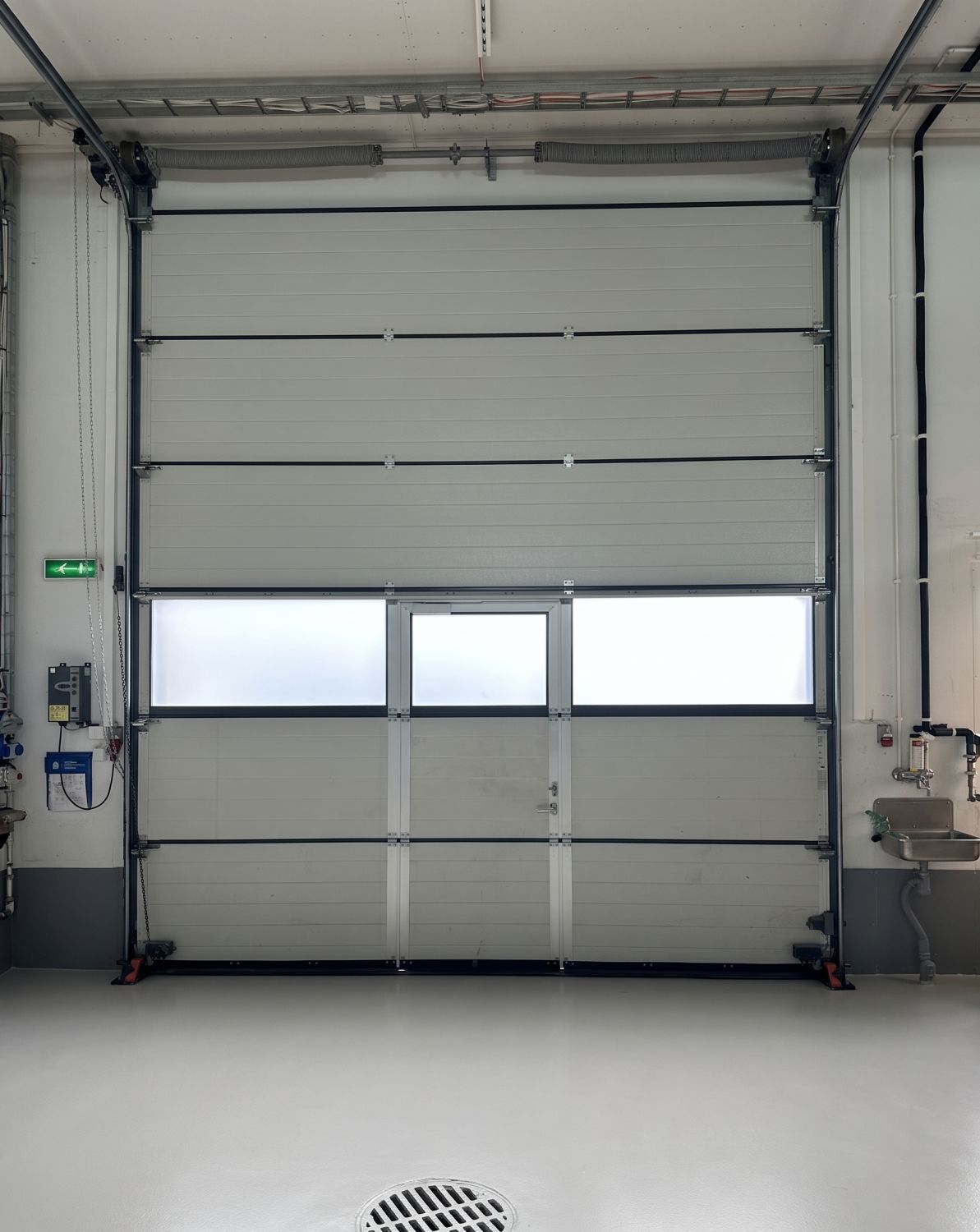 Sähköinen nosto-ovi. Oven korkeus 4,2 m.