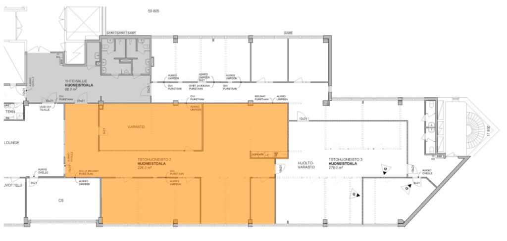 Tämä 226 m² toimistotila sijaitsee kiinteistön toisessa kerroksessa. Tila sisältää jyvitetyn aulatilan, jossa on wc-tilat. Toimisto on pääosin avonainen. Toimistoa on mahdollista muunnella vuokralaisen tarpeiden mukaan.
