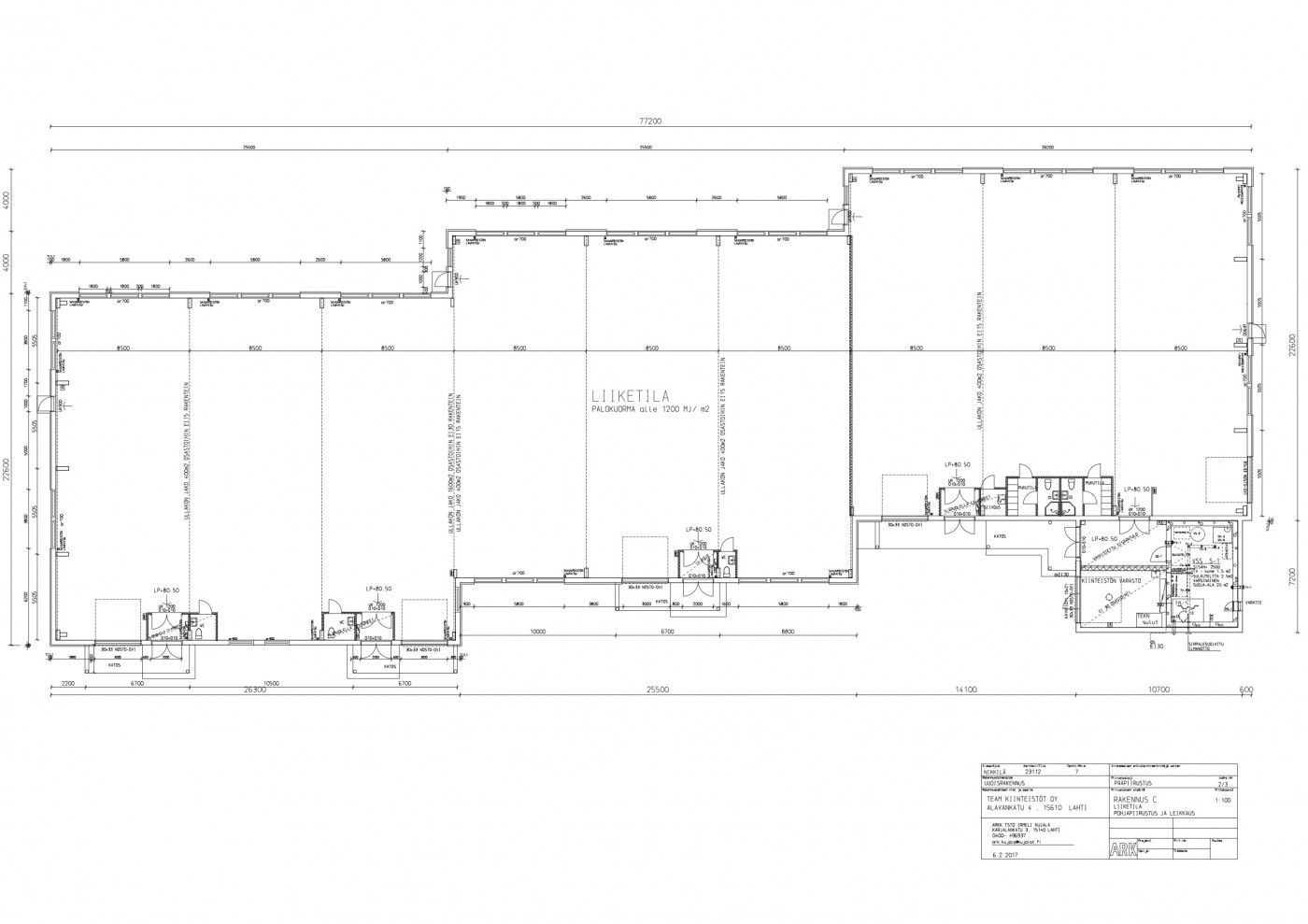 2 nosto-ovea. Pohjakuvasta keskimmäinen tila. Samalla alueella neuvoteltavissa 1100 m2 tila.