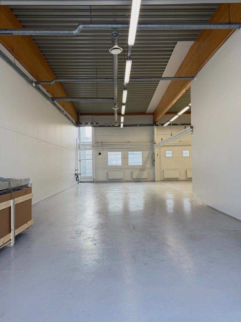 Tilan pinta-ala on 164,5 m². Kyseessä on korkea tila, jossa on nosto-ovi sekä erillinen käyntiovi, mikä helpottaa tavaraliikennettä ja kulkua.