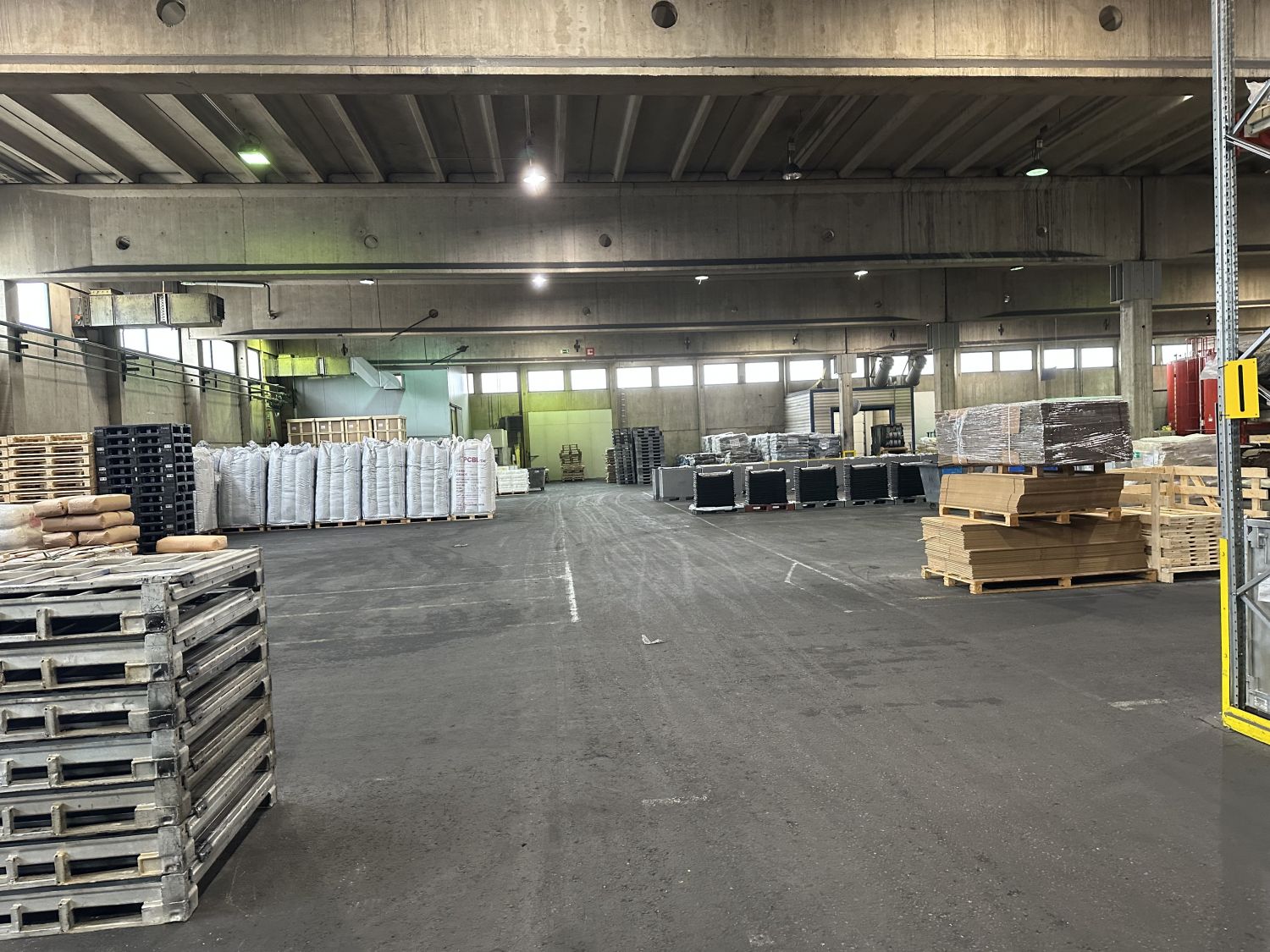 selkeää hyvää hallitilaa, koostuu kolmesta hallilohkosta , useita isoja ovia ja lastauslaiturit, isot pihat