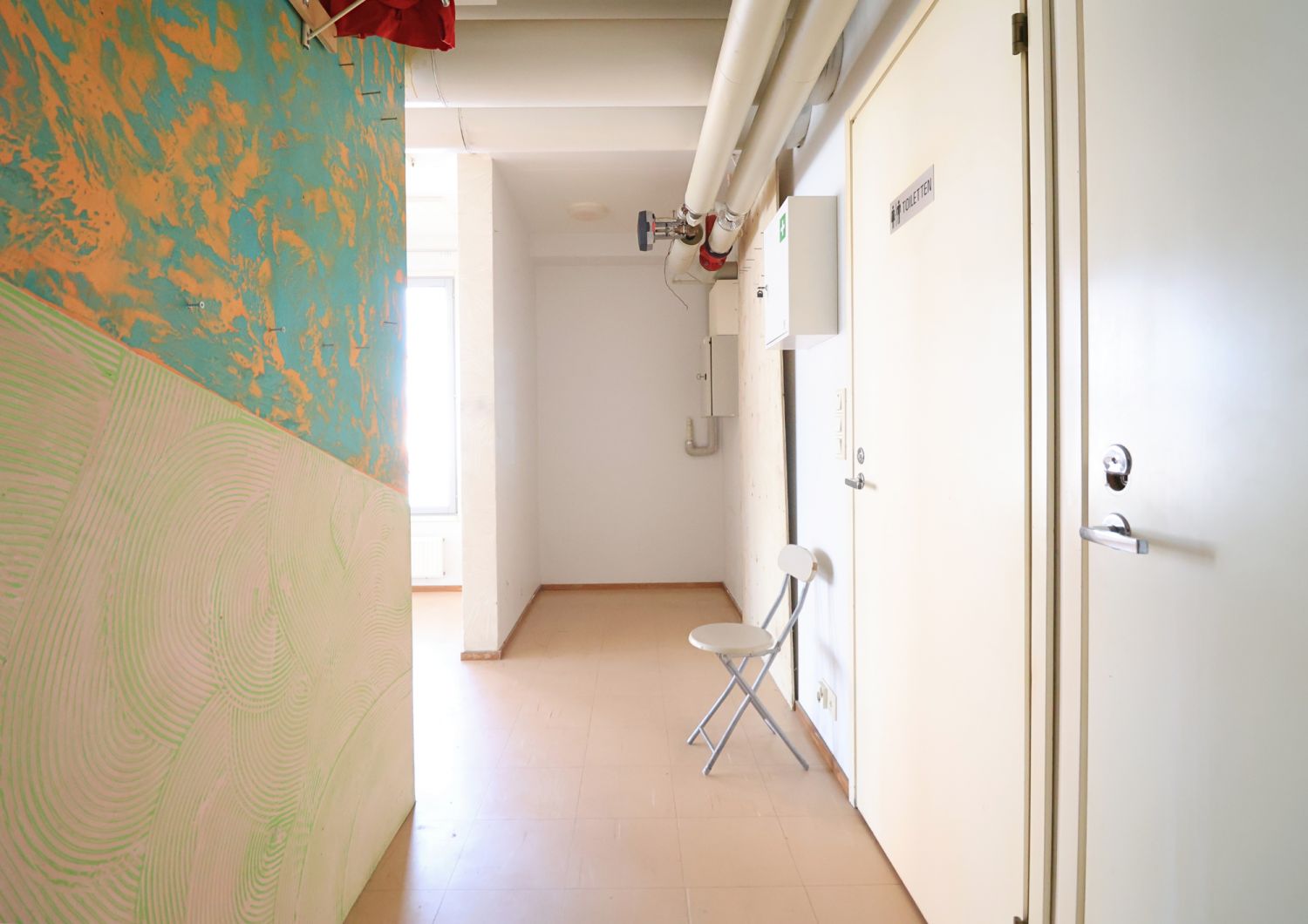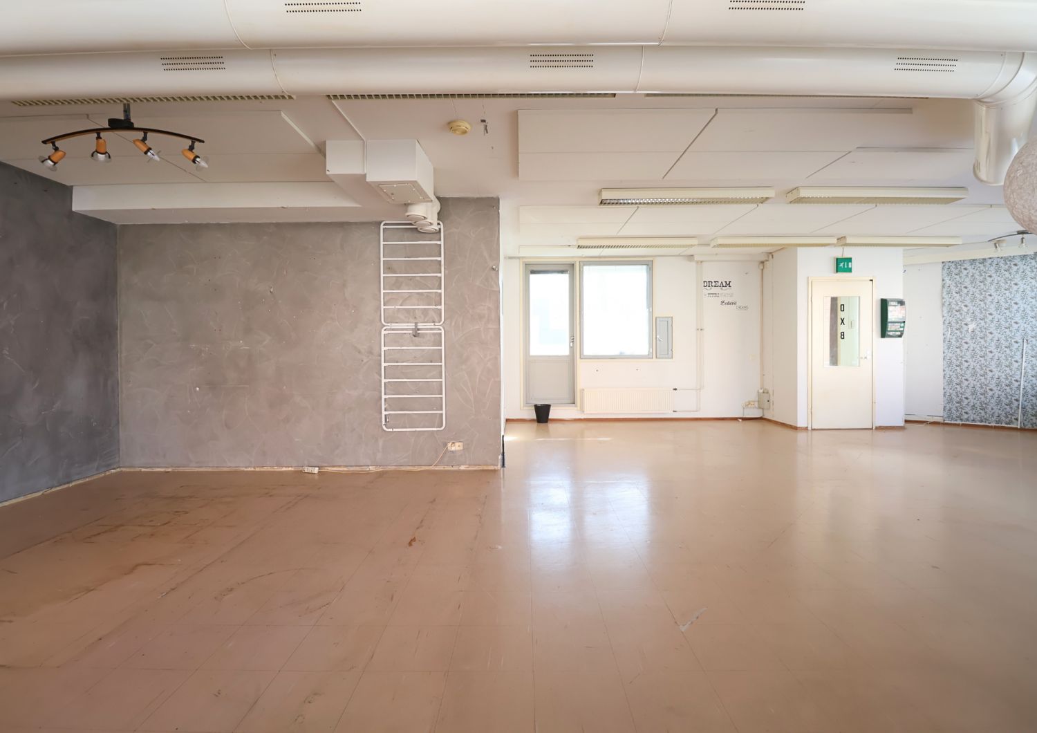 Tilassa on useampi ikkuna kadulle päin, mikä tuo runsaasti luonnonvaloa ja parantaa näkyvyyttä. Pohjaratkaisu on toimiva: yksi isompi liiketila, erillinen keittiökomero sekä kylpyhuone, jossa wc.