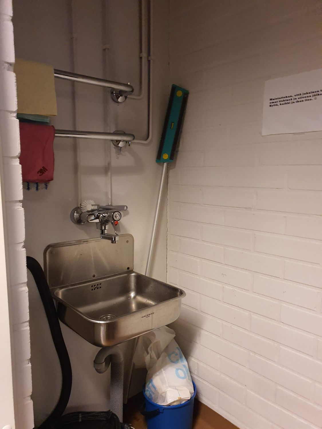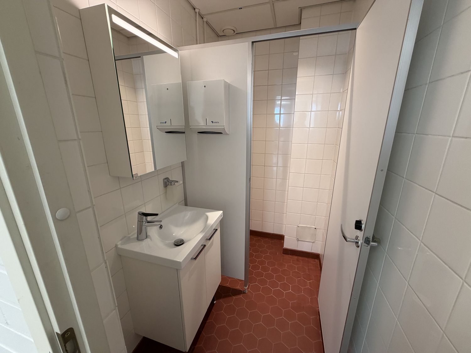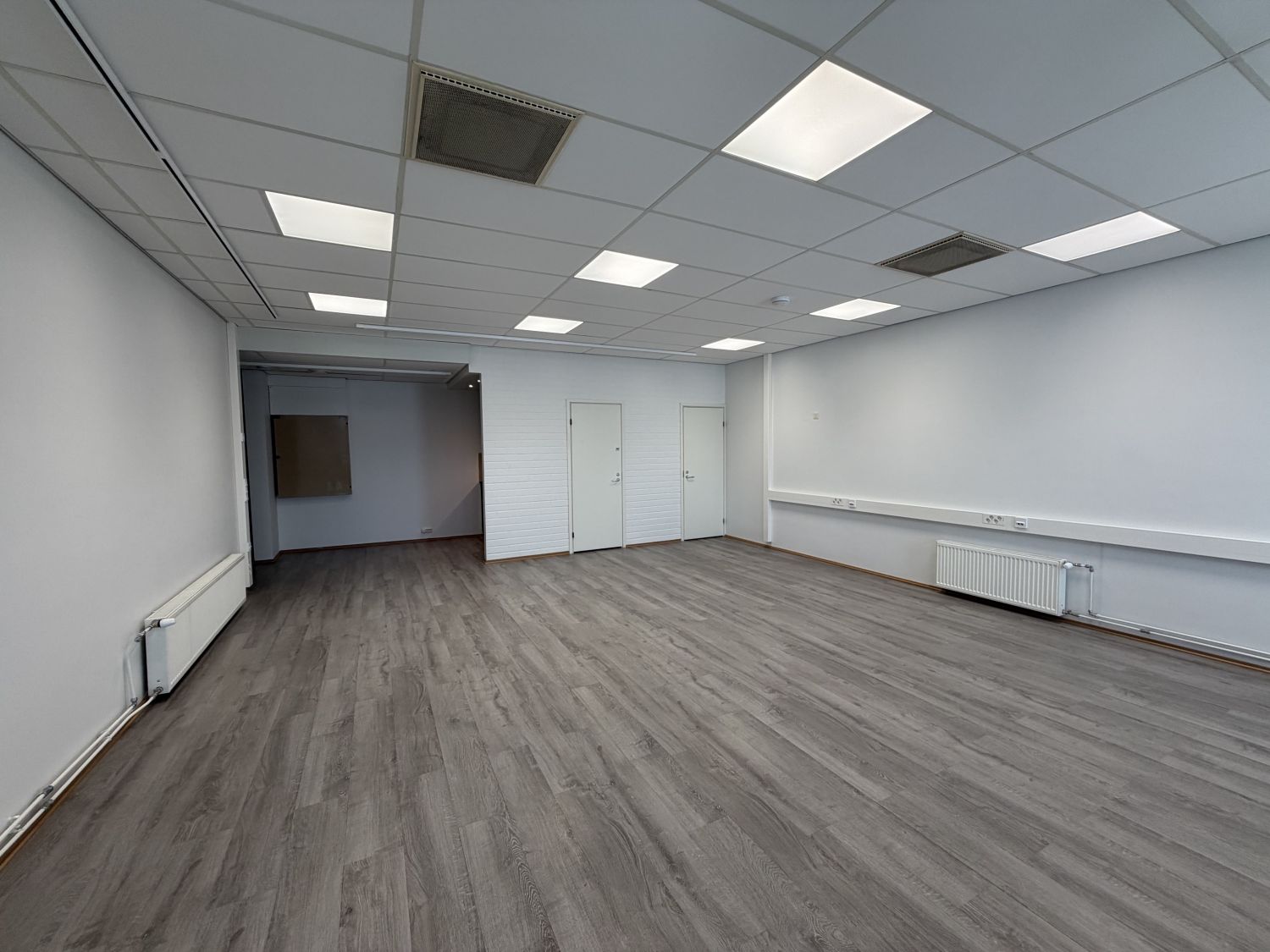 Tilassa koneellinen ilmanvaihto ja jäähdytys. Avotilan lisäksi, keittiö, wc-tila, suihku ja siivouskomero.