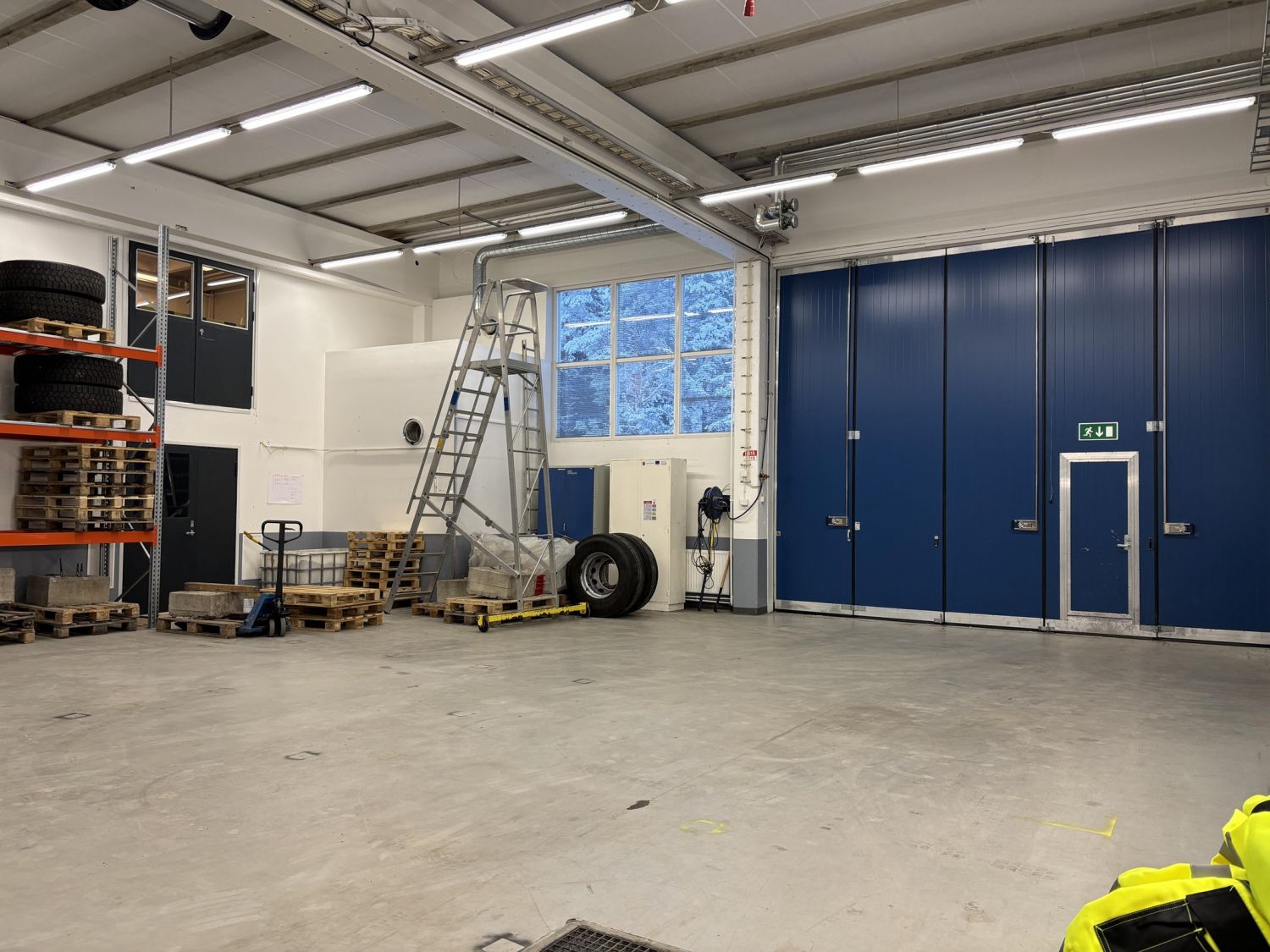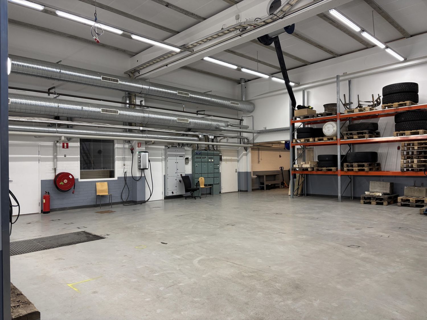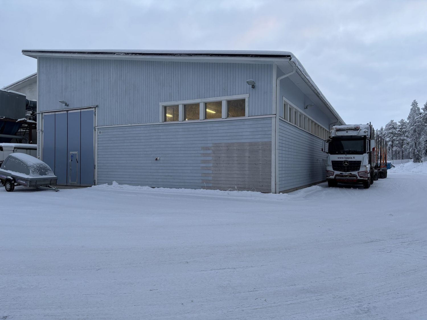 Toisessa rakennuksessa on kaksi hallia n. 877m2 ja n. 836m2, sekä lisäksi toimisto- ja taukotilat.