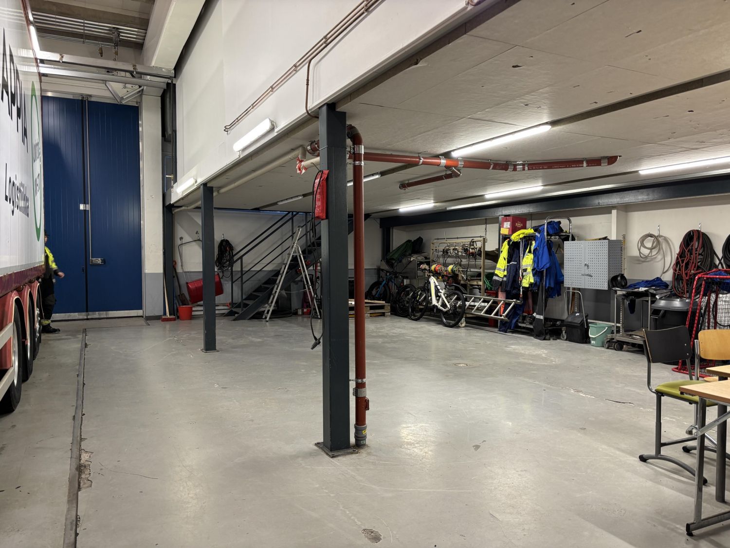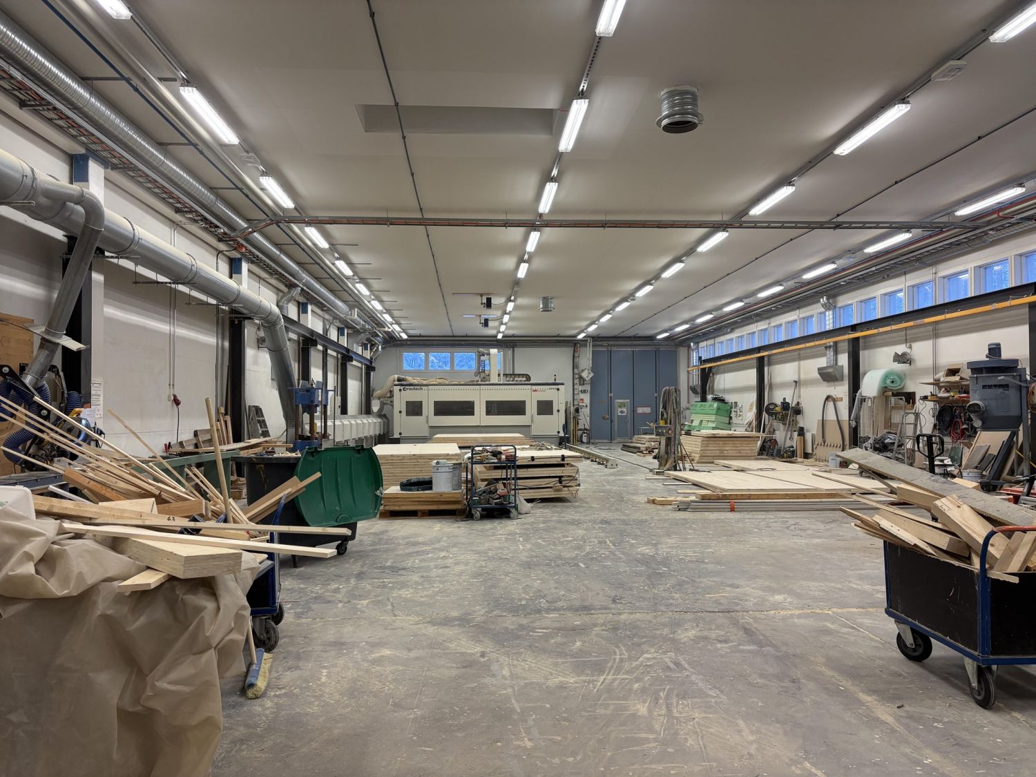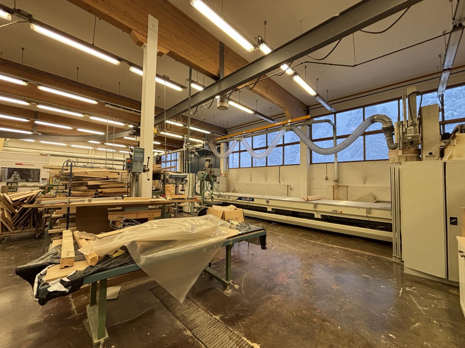 Toisessa rakennuksessa on kaksi hallia n. 877m2 ja n. 836m2, sekä lisäksi toimisto- ja taukotilat.