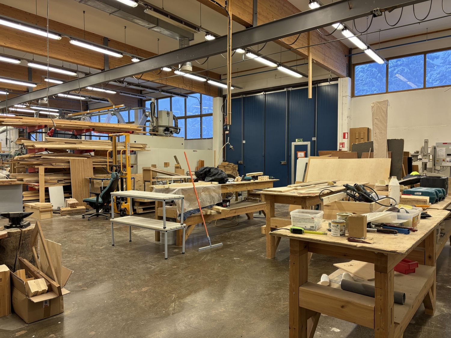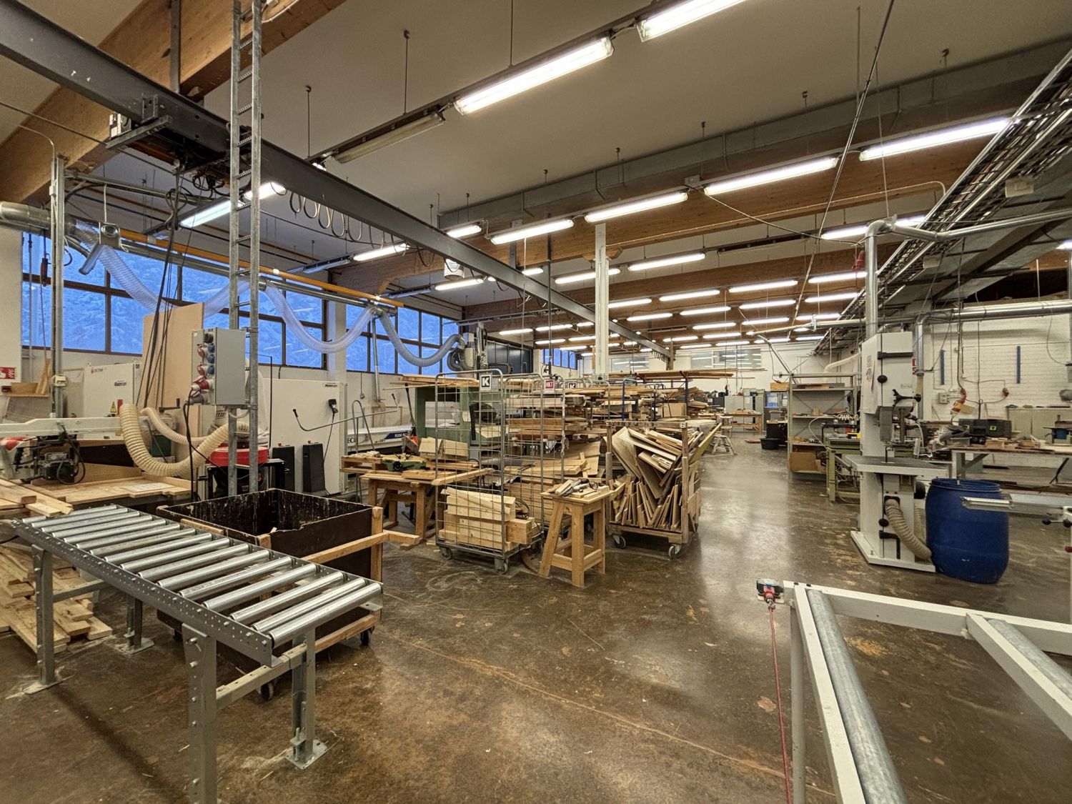 Tontilla on kaksi rakennusta, joista ensimmäisessä on n. 501,5m2 hallia ja n. 1275m2 muita tiloja, jotka ovat olleet opetuskäytössä ja opettajien työtiloina. Hallin hyötykorkeus n. 4,7m. Ovikorkeus 4,4m.