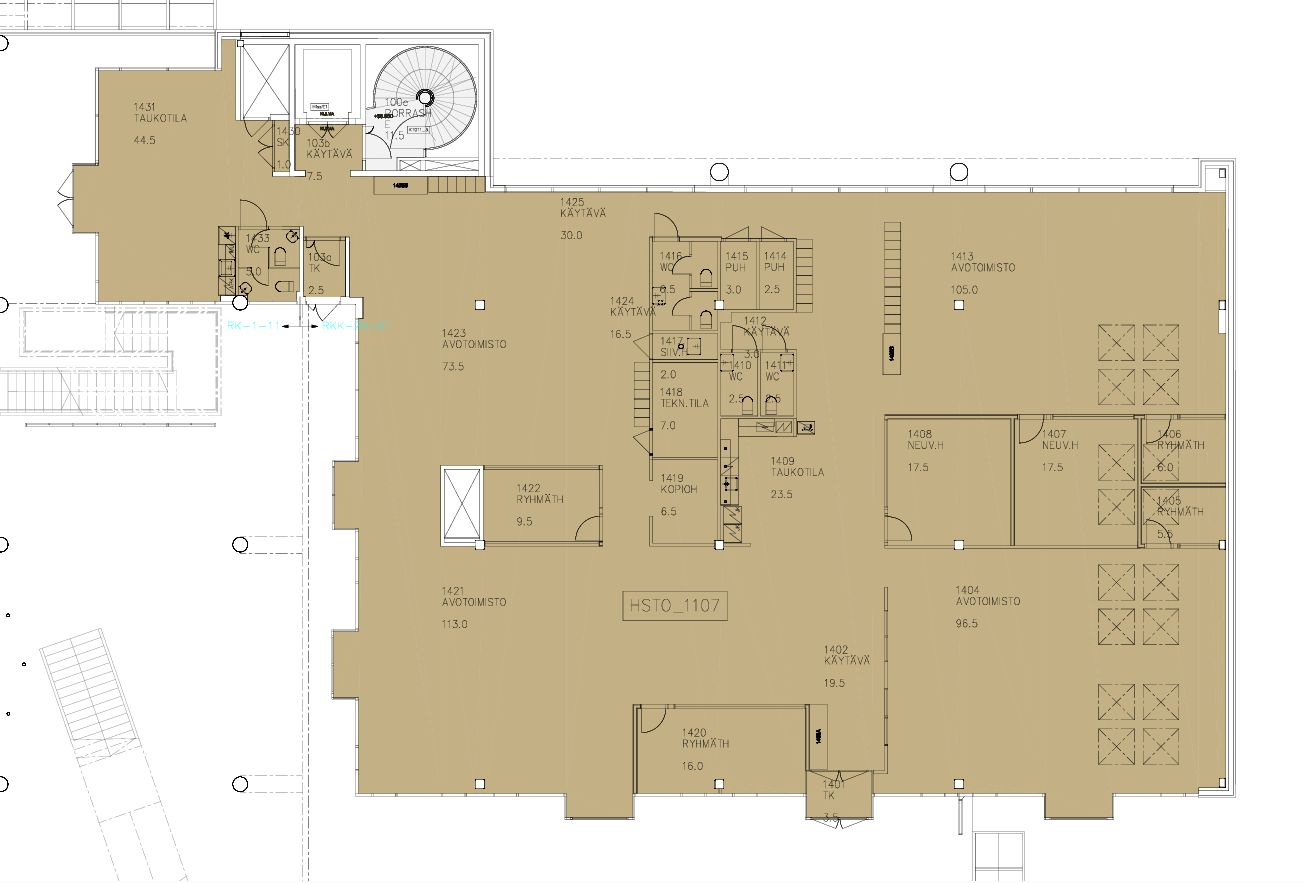 Vuokrattavana ensimmäisen kerroksen avaraa, siistiä ja modernia toimistotilaa. Tilassa on avotila, muutamia työhuoneita, kaksi taukotilaa ja sosiaalitilat.