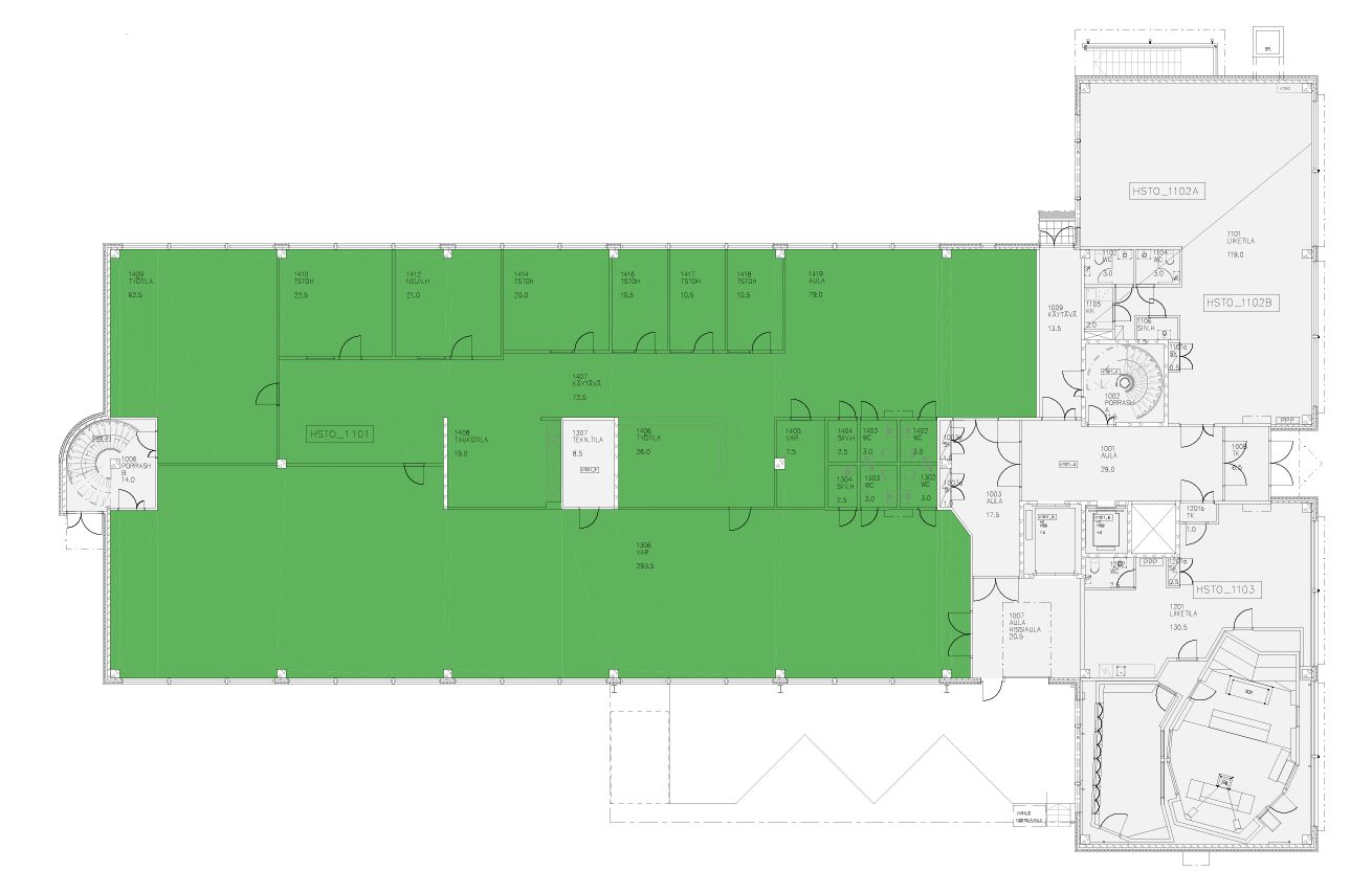 Vuokrattavana katutason siistiä toimisto-/varastotilaa. Tila kostuu koostuu noin 300 m² varastotilasta sekä 385 m² avotoimistotilasta, omasta keittiöstä ja sosiaalitiloista. Tilaan suorayhteys lastauslaiturilta.
