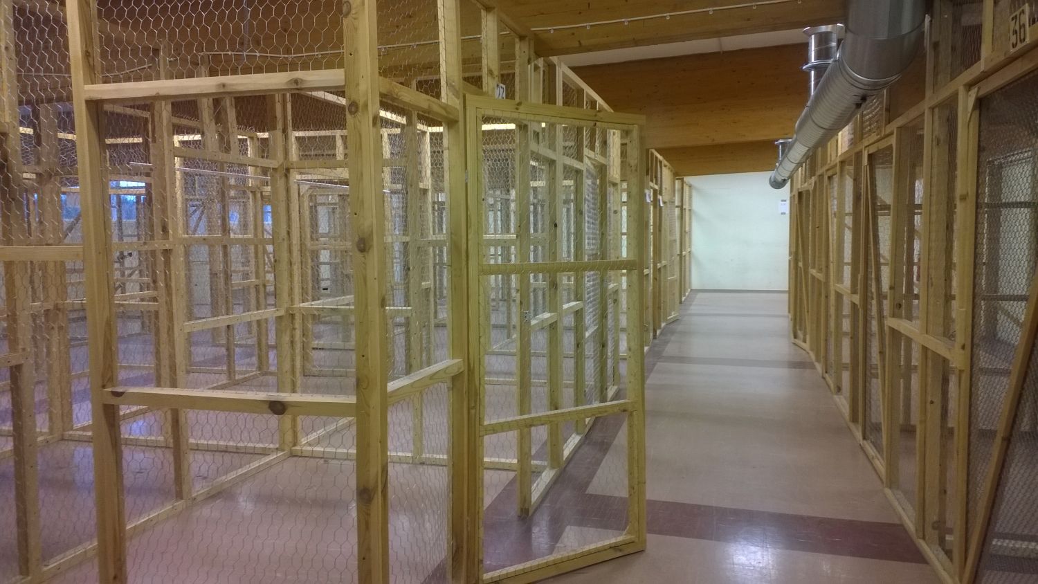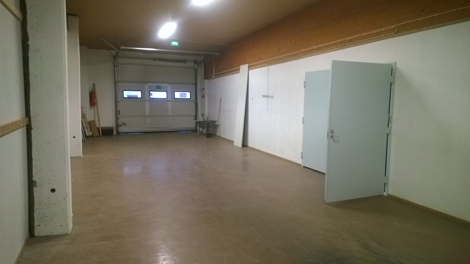 Toisessa 500 m² tilassa tällä hetkellä häkkivarastoja, jotka voi tarvittaessa purkaa.