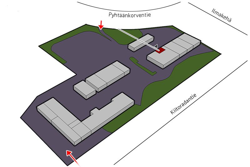 Keskeinen sijainti; näkymä Tuusulantielle, ajo Kiitoradantien tai Pyhtäänkorventien kautta alueelle. Logistisesti loistava sijainti lentokentän vieressä.