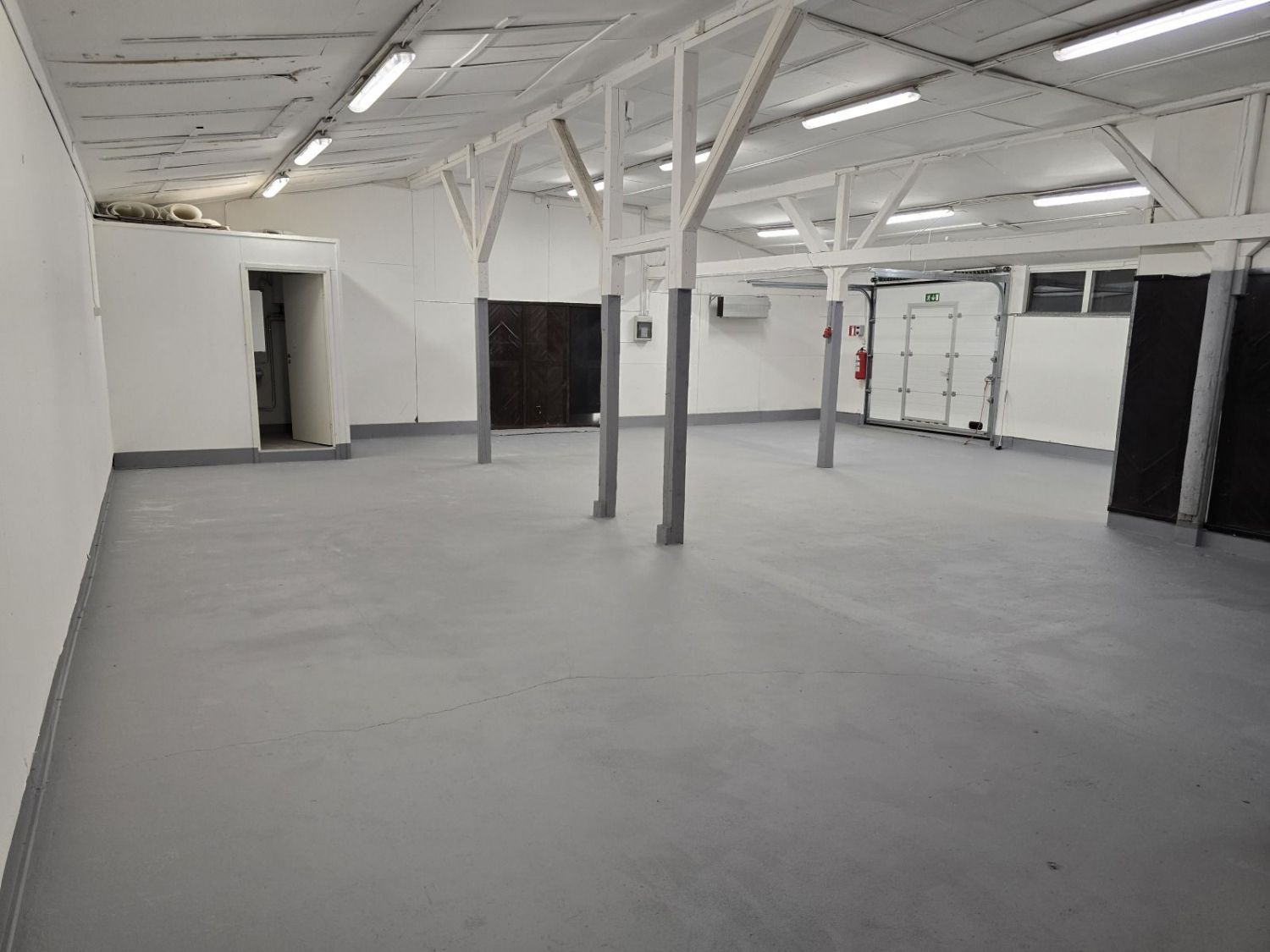 2019 valmistunutta tuotanto- ja varastotilaa. Korkea tila ja iso sähköovi.
