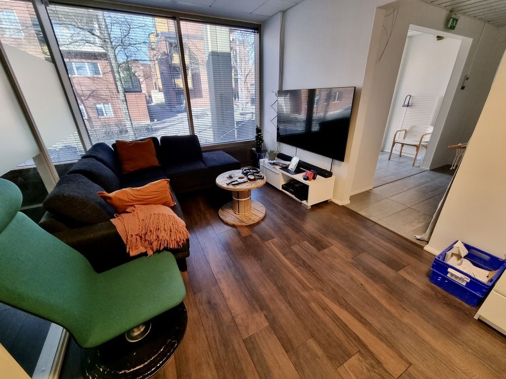 Tämä 78,5 m² toimitila sijaitsee kiinteistön katutasossa. Tila soveltuu sekä toimistoksi että liiketilaksi. Tilasta löytyy neuvotteluhuone, wc, suihkutilat ja keittiö. Tila sijaitsee Pasilanraition puolella.