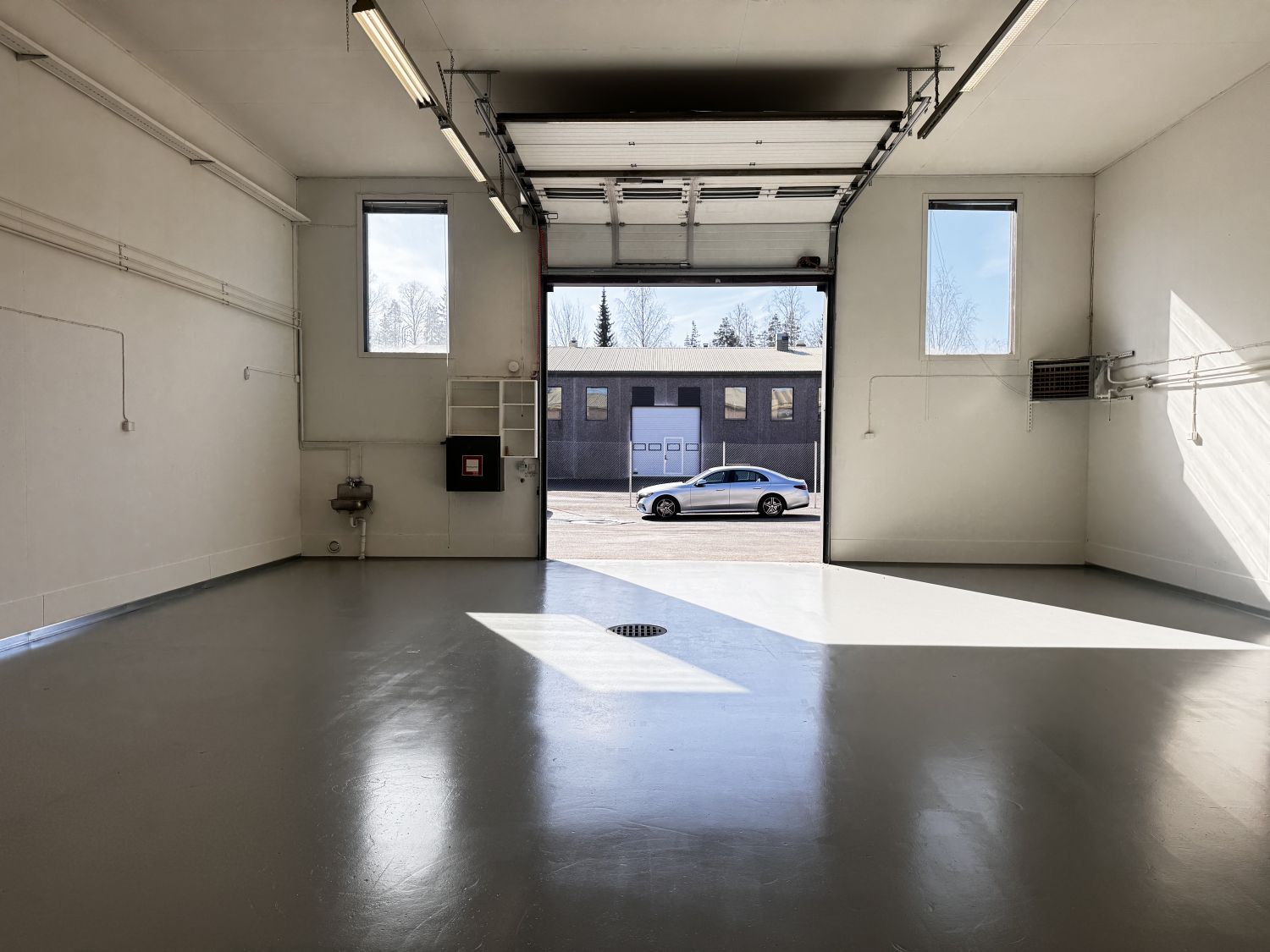 Kuorma-autolla sisään, 6m. korkeata tilaa. Öljynerotuskaivo, toimistotila väliseinän takana. Valokuitu. Minikeittiö, wc/suihku. 2kpl. autopaikkoja ulkona.