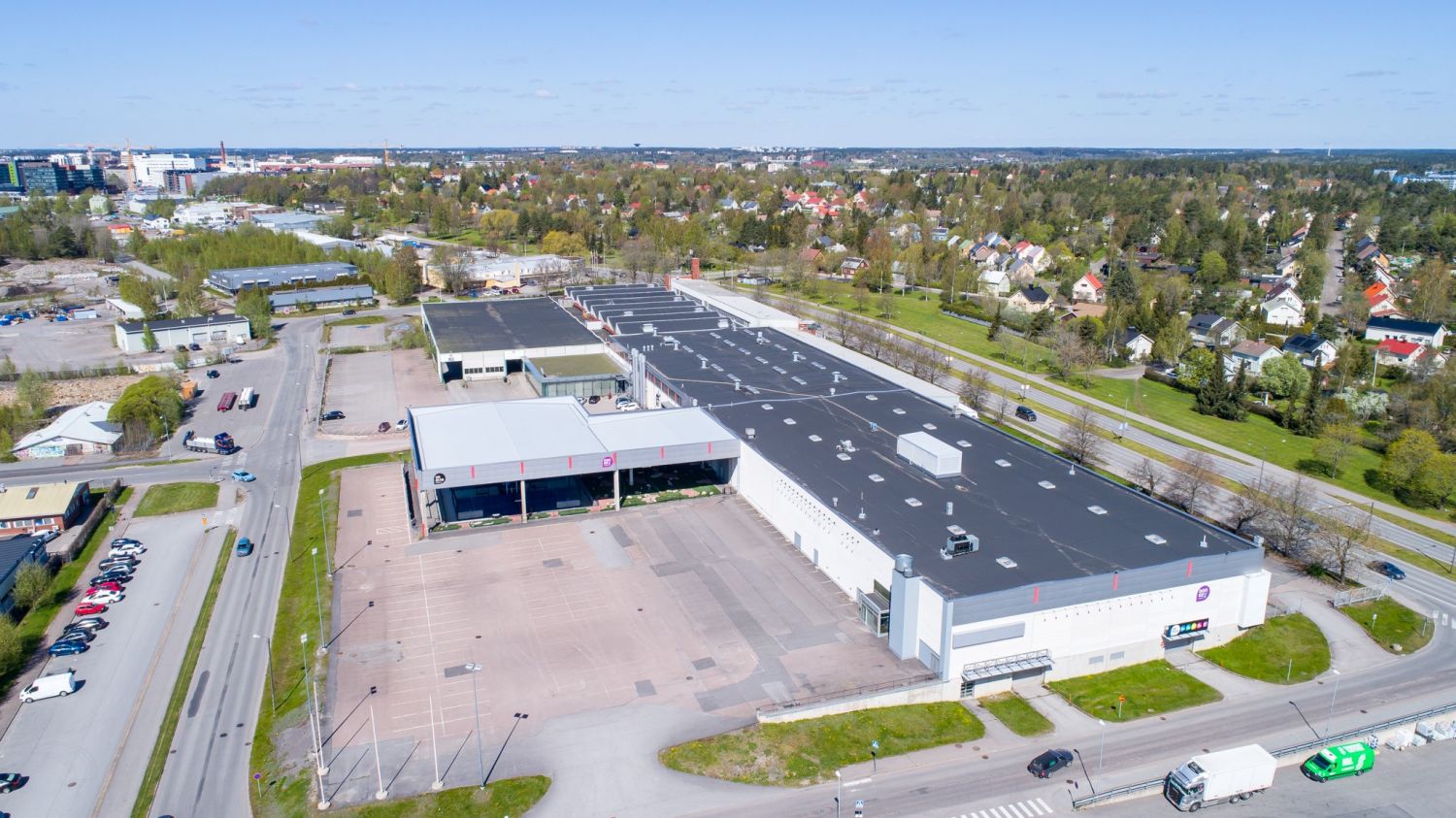 Tila on toiminut huonekaluliikkeenä. Vieressä on Power, Gigantti, McDonalds, Pet-Vet ym.